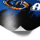 A bold BMX street-style illustration of a rider performing a trick, featuring dynamic blue and orange splashes with graffiti-inspired text reading “BMX – Urban City.”