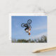 Fotografi av en ung man som vänder upp och ner medan han är luftburen på sin BMX-cykel