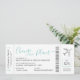 "Planförändringen" vid påstigning ändrar datumet för flygplanet biljett-annonskort för ett uppskjutet eller omlokaliserat destinationsbröllop, med en minimal och modern elegant med ett romantiskt och sött resetema för flygplanet i silver med ett hjärta, som visas i silver och turkosa tealblått. Hela texten, linjer och färg i bakgrunden kan ändras för att skapa din egen utformning med hjälp av mallen för ett modernt påstigningskort på 80-talet eller 90-talet för vintagen flygplan biljett. Besök samlingen Papper Grape Destinations Zazzle Designer för koordinerande artiklar.