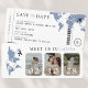 Boarding Pass Dusty Blue 3 Foton Bröllop Spara Datumet