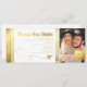 Modern falsk guld boarding pass bröllopsbiljett med en enkel vit bakgrund som kan ändras till valfri färg, ett foto av det förlovade paret, ett plan med ett hjärta släpar efter sig, och en personlig save the date mall som är lätt att anpassa. Observera: Denna produkt har inte äkta guld folie. Det är en grafik som är gjord för att se ut som guld folie.