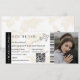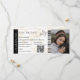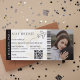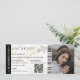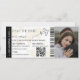 Modern minimalistisk monogram boardingkort bröllopsbiljett med en enkel vit och brun bakgrund, ett foto av det förlovade paret, ett plan med en slinga och en lättanpassad mall för att spara datum. Glöm inte att ändra texten på baksidan av monogrammet.