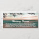 Detaljkort för strandbröllop med en tropisk palmbadstrand, stränglyktor och en modern mall för bröllopsinformation.