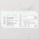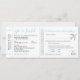 Silver och Teal Turkos Blå Allt-i-ett Strandbröllopsinbjudan i form av en Ombordstigningskort Flygbiljett, med en sektion för gästerna att KLIPPA av och skicka tillbaka som ett bifogat vykort-RSVP. En silverfärgad flygplanshjärtlogotyp pryder den enkla och autentiska retro-biljettstilen.