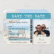 Boardingkortet för destinationsbröllopet, som sparar datumkorten, är en perfekt som stämmer överens med inbjudningarna, OSANS, klockbanden och portot. Bakgrundsfotot är Cancun, Mexiko, men ett tropiskt destinationsbröllop skulle fungera på ett bra sätt med det här bröllop spara datum-kortet stil. Du kan enkelt använda mall och snabbt redigera med egen information.