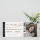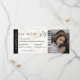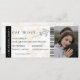 Modern boardingkort i monogram passerar bröllop biljett med en enkel vit och brun bakgrund, ett foto av det förlovade paret, ett flygplan med en loopspår och en personlig sparar datummallen som är lätt att anpassa. Glöm inte att uppdatera monogramtexten på baksidan.