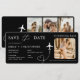 Inbjudan i stil med boardingpass för destinationsbröllop, utformad som en flygbiljett för en rolig, reseinspirerad firande. Skapad för att dela bröllopsinformation med en lekfull men polerad look som sätter tonen för ett oförglömligt evenemang på destination. Perfekt för strandbröllop, resetematiserade bröllop och ceremonier på destination. Redigerbar text. Rent tryckfärdigt format.