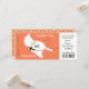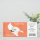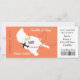 En rolig men stilren bröllopsinbjudan i stil med boardingpass/biljett för par som gifter sig på den vackra grekiska ön Zante som visas i en vit kart-silhuett på korall med vackra guldfärgade hjärtan, flygsilhuett och korallpärlor som virvlar runt i en hjärtform.