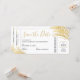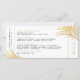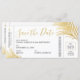 Modern, elegant och enkel faux-folie-guld-löv-design på ett trendig- och roligt-destinationsbröllop sparar datumkortet som ser ut som ett flygplan som går ombord på biljett. Varje del av vår chic flygplan biljett-mall är redigerbar så att du kan skapa en till kostym om färg och tema för bröllop. Det finns utrymme för att lägga till reseinformation på baksidan, eller ta bort designen på baksidan om informationen inte är redo än, du kan lägga till ett foto eller ett eget bröllop-monogram med hjälp av den avancerade designern, klicka bara på "anpassa ytterligare".