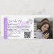 Modern minimalist monogram boardingpass bröllopsbiljett med en enkel vit och brun bakgrund, ett foto av det förlovade paret, ett plan med en loop-spår och en lätt anpassningsbar mall för sparad datum. Glöm inte att ändra texten på baksidan av monogrammet.