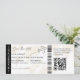 Modern minimalist monogram boardingpass bröllopsbiljett med en enkel vit och brun bakgrund, ett foto av det förlovade paret, ett plan med en loop-spår och en sparadatum-mall som lätt kan anpassas. Kom ihåg att uppdatera texten på baksidan av monogrammet.
