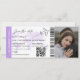 Modern minimalistisk monogram boardingpass bröllopsbiljett med en enkel vit och brun bakgrund, ett foto av det förlovade paret, ett plan med en loop-spår och en lättanpassad mall för sparadatum. Glöm inte att ändra texten på baksidan av monogrammet.