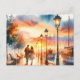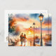 Det påminner om en gammal romantisk film. Ett par går på en karta vid solnedgången.