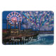 HAPPY NEW YEAR! Graphic painting of colorful fireworks at the boardwalk by the ocean. Commemorate the New Year with this unique magnet and send to someone special.