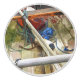 Konst som är utformad för insidan av en liten roddbåt med fiskeutrustning.