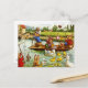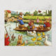 Vintage konst av bunnier som tar en båt rider en flod. Andra djur finns överallt