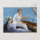 A fine art postcard featuring Boating (1874), a painting by French artist Édouard Manet (1832–1883), showing a man and an elegantly dressed woman in a sailboat.