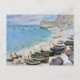 Ett vykort för konst med bra som visar hur Claude Monet målar upp det imponerande landskapet (1840-1926), Boats on the Beach at Étretat (1885). En fängslande teckning som skildrar den bergiga kusten i Étretat, en pikresk stad i Normandie, Frankrike, som Monet ofta målade upp. Monet portrays fiskebåtar vilar på sandstranden mot bakgrund av dramatiska kritklippor.
