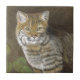 En pastel porträtt av en blyg och vacker Bobcat finns på den här keramiska plattan.