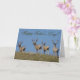 Mulehjort sparkar bakut i försett med text" kort för sammet ". Bockar för Mulehjort i sammet täckte horn på kronhjort krönar en högväxt backe under en klar blå himmel på en varm vårmorgon.