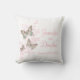 Fin grafik konst tre fjärilar och blommigt snurra i rosa, kräm, akvatal och bruna, minneshögkvarter i bröllop. Anpassa med brud och rum i namn. En perfekt gåva till nygifta för att börja där underbart giftermål och minnas dagen i många år till komen. Om du klickar på anpassningsknappen kan du t.o.m. lägga till ett foto av bröllop på baksidan av kudden.