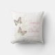Vackra konstfjärilar och snurra blommigten i rosa, grädde, akvatal och bruna, minneshögkvarter i bröllop. Anpassa med brud och rum i namn. En perfekt gåva till nygifta för att börja där underbart giftermål och minnas dagen i många år till komen. Om du klickar på anpassningsknappen kan du t.o.m. lägga till ett foto av bröllop på baksidan av kudden.