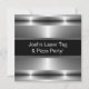 Pojks högteknologiska silver-krom och svartsvart valfri märkre och pizzamall födelsedagsfest inbjudan. Anpassa med information om party.