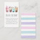 Vi presenterar våra förtjusande inklusionskort för en Boba-tematisk babyfest! Dessa kort visar en rad akvarell-bubbelteekoppar på en ren vit bakgrund, med en vacker pastellrandig baksida.