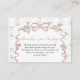 Denna eleganta infogningskort för baby shower med temat ”Böcker till baby” har ett romantiskt vintageblommigt mönster med mjuka rosa rosabågar, diskreta blåa bandaccent och utsökta botaniska illustrationer inspirerade av väggdekorationer från äldre tid. Den graciösa skrivstilstypografin i kombination med klassisk seriftext skapar en tidlös, feminin utstrålning som perfekt kompletterar temat ”Baby i blom” för baby shower.
