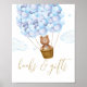 En blå, pojke bebis shower böcker och gåvor skylt med en söt björn i en varmluftsballong. Designad av Thisisnotme©