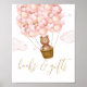 En rosa skylt för flickbabyfirande med böcker och gåvor med en söt björn i en varmluftsballong. Designad av Thisisnotme©