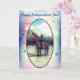 Det här hälsningskortet innehåller ett foto som är redigerat i skisser av en cowboybild som är monterad på en häst som håller en amerikansk flagga. Fyll i malltexten för omslaget och inuti hälsning, ta bort texten eller klicka på anpassa för att välja det typsnitt stil, storleka och färg som du vill ha. ©Patricia AZ Phillips