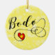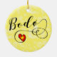 Julens dekoration/dekoration med Bodø flagga i ett hjärta, med skrivet typsnitt.