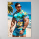 Coola Bodybuilding der Model Wearing Print T-shirt with Coola Sunglasses with Hawaii Beach Scene, with Download Option.