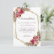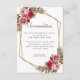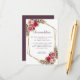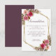 Elegant och formell tillbehörskort för bröllopsinformation med romantisk bröllopsakvarell omgiven av grönska på en krävande vit bakgrund. En glänsande geometrisk kristallformad ram i guld ger en trendig touch. Traditionell, klassisk formulering ger tidlös sofistikation. Anpassa bröllopsdetaljer för dina gäster med elegant lila cassis-typografi och typsnitt. Baksidan av kortet är i matchande enfärgat lila cassis.
