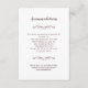 Elegant bröllopsinformation inkvarteringsdetalj bifogad kort har en klassisk design i tidlös burgundy på en genomskinlig bakgrund som visar ditt val av brevpapper. Två ömtåliga dekorativa detaljer som var och en innehåller ett hjärta symboliserar att två hjärtan blir ett. Anpassa mallen med dina uppgifter i vacker bokstavsstil och skrivstil. För bästa resultat, hoppa över rader och skriv med versaler som i provet. Kombinera med vår koordinerade inbjudan, RSVP-kort och bröllopswebbkort för att komplettera din inbjudan. Se samlingslänken i denna lista för alla matchande artiklar!