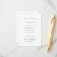 Elegant bröllopsinformationsdetalj för boende har ett klassiskt utförande i trendigt dammigt blått på en genomskinlig bakgrund som visar ditt val av brevpapper. Två ömtåliga dekorativa detaljer som var och en innehåller ett enda hjärta symboliserar att två hjärtan blir ett. Anpassa mallen med dina detaljer i vacker, dammig blå bokstav och skrivstil. För bästa resultat, hoppa över rader och skriv med versaler som i provet. Kombinera med vår koordinerade inbjudan, RSVP-kort och bröllopswebbplatskort för att komplettera din inbjudan. Se samlingslänken i denna lista för alla matchande artiklar!
