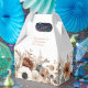 Set against a white background, the floral design adds warmth and texture without overwhelming the simplicity of the box itself. The palette evokes a sense of calm and sophistication, making the box feel both personal and polished. Whether placed at a table setting or handed out as a parting gift, the design elevates the favor with a quiet charm, reinforcing the event’s cohesive visual identity.