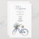 Det här bohemiinspirerade bröllopsprogrammet har en blå cykel med en basket fylld med vackra blå och vita blommor och ett par levande fåglar på sätet. Söt, enkel och elegant. Anpassa enkelt den här designen med din information och fyll i utseendet med alternativen för kontorsmaterial och tillbehör med det här temat. Särskilt trevligt för vår och sommartid bröllop. Baserat på en ursprunglig vattenfärg av © Lisa Audit Art. Surround you with heartwarming Art.