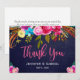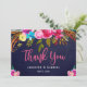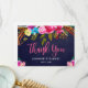 Bohemian Blommigt Rosa Navy Script Bröllop Tack Kort