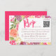 Osa i stil med vårt bohemiska ljusa blommigt-skript chic bröllop-svarskort med söt handmålad ljus och djärv modern vild blommor blandar en vintage känsla, med korallpeonier, lila blommor, rosa ros och grönsak med en botanisk boho som kallas bröllopsfest. Med modern manustypografi och nyare rosa. Lägg till din qr-kod för att styra dina gäster till mer information och information, lägg till dina matval, sång begäran ...