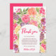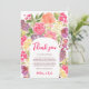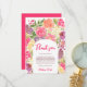 Visa er tacksamhet med vårt bohemiska ljusa blommigt-skript chic bröllop tack vare ditt kort med söt handmålade ljusa och djärva, moderna blommor i vild blandar en vintage känsla, med korallpeonier, lila blommor, rosa ros och grön med en botanisk boho som kallas bröllopsfest firande. Med modern manustypografi och nyare rosa.