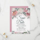 Det här bohemiska stil "spara datumet"-kortet har detaljerat färgade blommor i skuggor av dammig ro och vitt med en gnutta grej. En ny sommardesign för alla slag av bröllop. Du kan ändra namn eller lägga till ett eget speciellt meddelande när du klickar på knappen "anpassa".