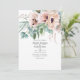 Rosa boho vattenfärgspoppies med silver-sage eucalyptus bröllopsinbjudan anpassade till dina händelsespecifikationer.