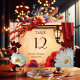 Bord nummer kort med en romantisk design med anemone och tusenskönor gerbera blommor i en klassisk italiensk eller medelhavsinspirerad stil med färgglada höstlöv och varmt lyktljus. Även om den är avsedd för ett bröllop, kan detta kort användas för alla höstfiranden, som en födelsedag, pension eller Thanksgiving ...