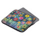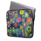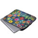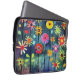 A vibrant, abstract artwork featuring whimsical, multi-colored flowers with circular centers against a blue and yellow backdrop, embodying a joyful folk art style.