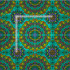 Flerfärgad juvelton hand plockade blommigt snöre mandala symmetrisk mönster.