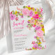 En söt, giftig bohemisk rosa ros, vildblommor, sommarsötad vår 16 födelsedagsfest med söt pastel rosa ros, vild land blommor i boho lavender, persiko, korall, röd, grönt löv, fern och mer, med en borstad manustypografi på en elegant som kan redigeras vit bakgrund.
