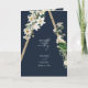 En vacker bohemisk stil-rustisk träpyramid med vita vattenfärgade blommigtar som kaskar på sidan och blå bakgrund. En unik utformning som användor vintage av vita vattenfärgade botaniska ämnen i en bohemisk triangelstruktur. En charmerande utformning av vit blommigt med rustiska och geometriska egenskaper och elegantens skripttypografi. En elegant bröllop-beställning av servicekortutformning med modernt inslag. Det finns också möjlighet att matcha bröllopsinbjudningar och andra artiklar i kontorsartiklar.