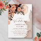 Den här inbjudan från elegant bröllop har fantastiska blommigtar på bakgrunden med klassisk typografi. Denna utformning är perfektens val för en rustik men elegant sen sommaren eller hösten bröllop.